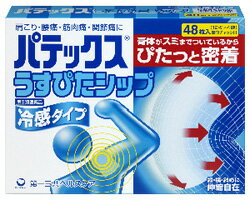 肩こり 腰痛 筋肉痛に【第一三共】 パテックス うすぴたシップ 48枚 価格: 1,550円 レビュー評価: 0.0 レビュー数:0 【 パテックス うすぴたシップ 】「パテックス」は、OTC医薬品パップ剤のパイオニアとして、発売以来43年間、肩こりや腰痛・筋肉痛に悩む多くの方に親しまれてきました。今回発売する「パテックス うすぴたシップ」は、独自の製剤技術により薄さ0.9〓とOTC医薬品パップ剤では最薄※を実現し、シップ自体のごわつきを軽減しました。 成分 成分 分量:膏体100g中 サリチル酸グリコール 2g l?メントール 1g アルニカチンキ 1mL(原生薬として0.2g相当) 効能・効果 肩こり、腰痛、筋肉痛、筋肉疲労、関節痛、打撲、捻挫、骨折痛、しもやけ 用法・用量 そのまま、または適当な大きさに切り、表面のフィ Supported by 楽天ウェブサービス |